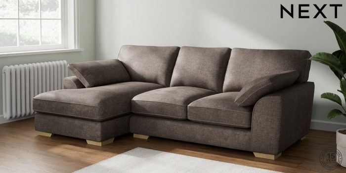 7.2.10 Stamford Grand Relaxed Sit Medium Sofa Chaise - Left Hand Plush Chenille Mink Brown Large Square Angle - Light | Made Click here to use our website with more accessibility support, for example screen readers