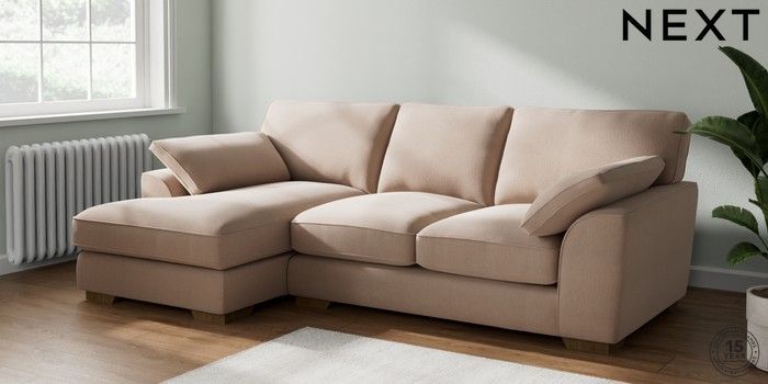 7.2.10 Stamford Grand Relaxed Sit Medium Sofa Chaise - Left Hand Relaxed Linen Look Mid Natural Large Square Angle - Mid | Made Click here to use our website with more accessibility support, for example screen readers