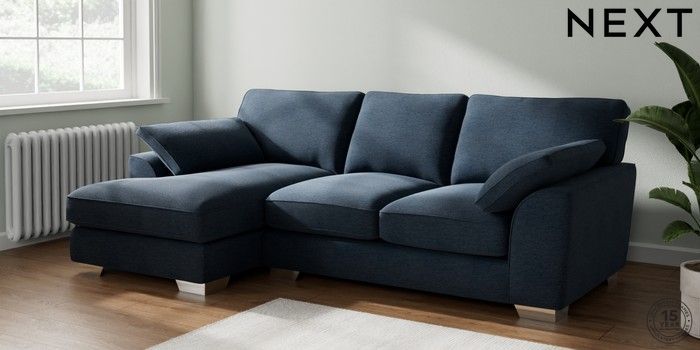7.2.10 Stamford Grand Relaxed Sit Medium Sofa Chaise - Left Hand Ripple Chenille Dark Blue Large Square Angle - Chrome Metal | Made Click here to use our website with more accessibility support, for example screen readers