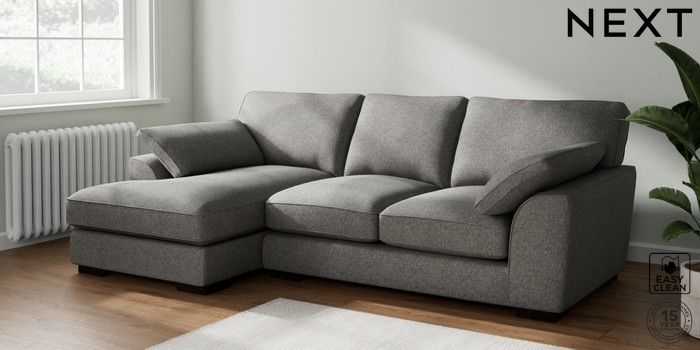 7.2.10 Stamford Grand Relaxed Sit Medium Sofa Chaise - Left Hand Tweedy Blend Easy Clean Dark Grey Large Square Angle - Dark | Made Click here to use our website with more accessibility support, for example screen readers