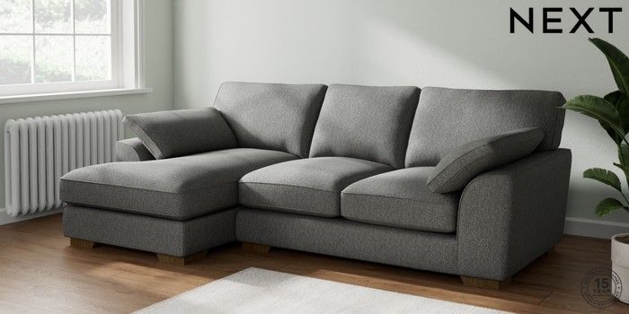 7.2.10 Stamford Grand Relaxed Sit Medium Sofa Chaise - Left Hand Tweedy Chenille Dark Grey Large Square Angle - Mid | Made Click here to use our website with more accessibility support, for example screen readers