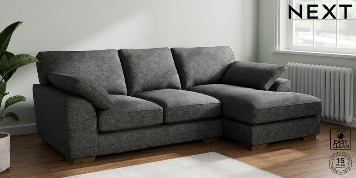 7.2.10 Stamford Grand Relaxed Sit Medium Sofa Chaise - Right Hand Boucle Weave Easy Clean Charcoal Grey Large Square Angle - Mid | Made Click here to use our website with more accessibility support, for example screen readers