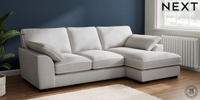 7.2.10 Stamford Grand Relaxed Sit Medium Sofa Chaise - Right Hand Chenille Stripe Slate Blue Large Square Angle - Dark | Made Click here to use our website with more accessibility support, for example screen readers