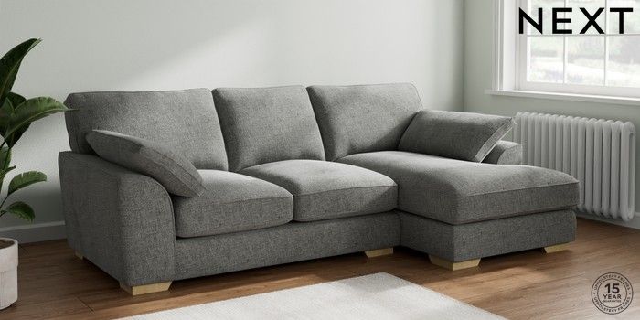 7.2.10 Stamford Grand Relaxed Sit Medium Sofa Chaise - Right Hand Chunky Chenille Dark Grey Large Square Angle - Light | Made Click here to use our website with more accessibility support, for example screen readers