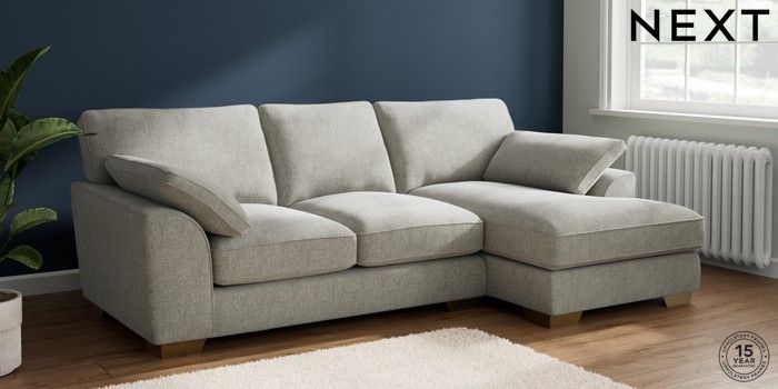 7.2.10 Stamford Grand Relaxed Sit Medium Sofa Chaise - Right Hand Chunky Chenille Light Grey Large Square Angle - Brushed Brass | Made Click here to use our website with more accessibility support, for example screen readers