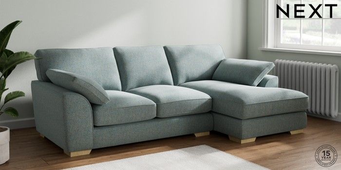 7.2.10 Stamford Grand Relaxed Sit Medium Sofa Chaise - Right Hand Chunky Marl Mid Blue Large Square Angle - Light | Made Click here to use our website with more accessibility support, for example screen readers