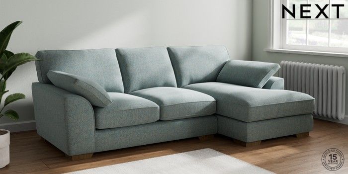 7.2.10 Stamford Grand Relaxed Sit Medium Sofa Chaise - Right Hand Chunky Marl Mid Blue Large Square Angle - Mid | Made Click here to use our website with more accessibility support, for example screen readers