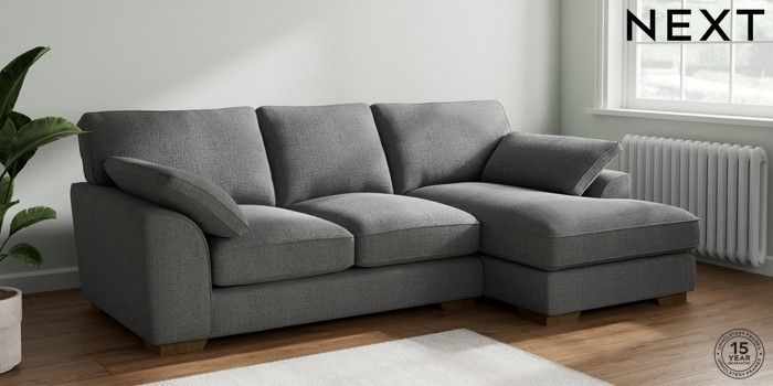 7.2.10 Stamford Grand Relaxed Sit Medium Sofa Chaise - Right Hand Chunky Texture Dark Grey Large Square Angle - Mid | Made Click here to use our website with more accessibility support, for example screen readers