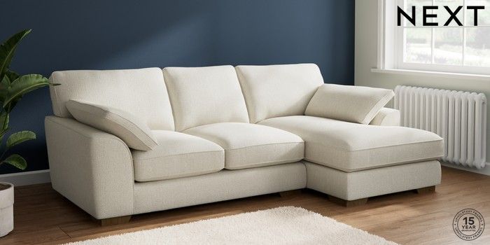 7.2.10 Stamford Grand Relaxed Sit Medium Sofa Chaise - Right Hand Chunky Texture Oyster Large Square Angle - Mid | Made Click here to use our website with more accessibility support, for example screen readers