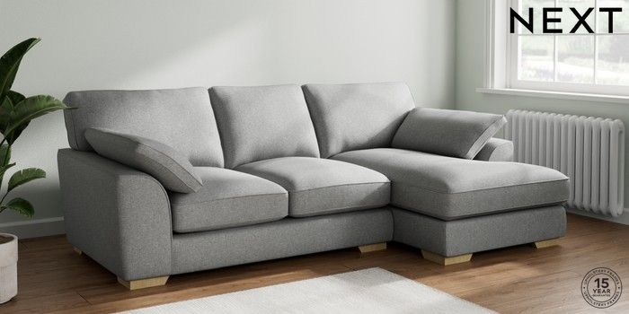 7.2.10 Stamford Grand Relaxed Sit Medium Sofa Chaise - Right Hand Chunky Weave Mid Grey Large Square Angle - Light | Made Click here to use our website with more accessibility support, for example screen readers