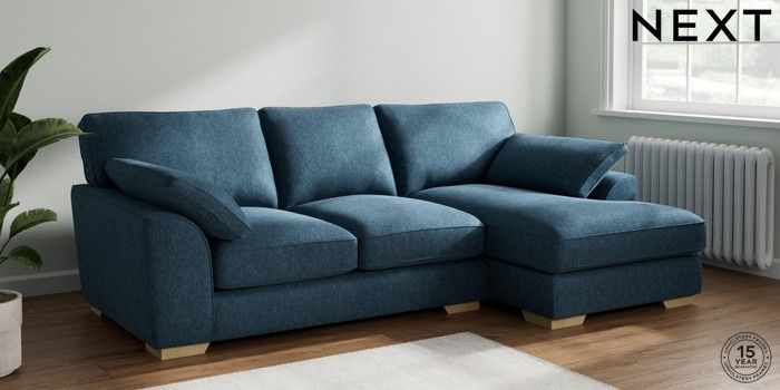 7.2.10 Stamford Grand Relaxed Sit Medium Sofa Chaise - Right Hand Cotswold Chenille Dark Blue Large Square Angle - Light | Made Click here to use our website with more accessibility support, for example screen readers
