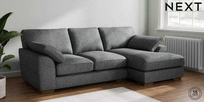 7.2.10 Stamford Grand Relaxed Sit Medium Sofa Chaise - Right Hand Cotswold Chenille Dark Grey Large Square Angle - Mid | Made Click here to use our website with more accessibility support, for example screen readers