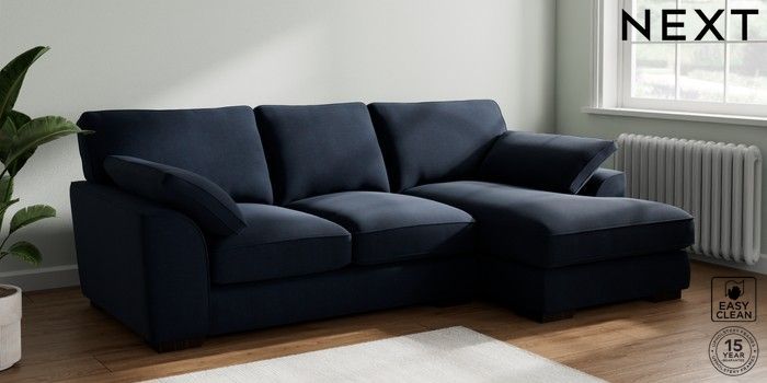 7.2.10 Stamford Grand Relaxed Sit Medium Sofa Chaise - Right Hand Fine Chenille Easy Clean Dark Navy Blue Large Square Angle - Dark | Made Click here to use our website with more accessibility support, for example screen readers