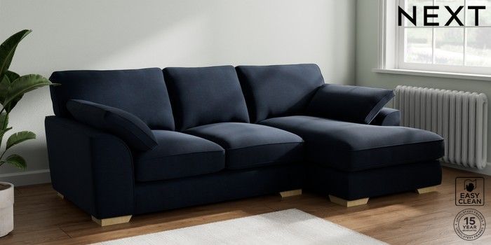 7.2.10 Stamford Grand Relaxed Sit Medium Sofa Chaise - Right Hand Fine Chenille Easy Clean Dark Navy Blue Large Square Angle - Light | Made Click here to use our website with more accessibility support, for example screen readers