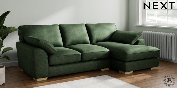 7.2.10 Stamford Grand Relaxed Sit Medium Sofa Chaise - Right Hand Luxe Chenille Dark Green Large Square Angle - Light | Made Click here to use our website with more accessibility support, for example screen readers