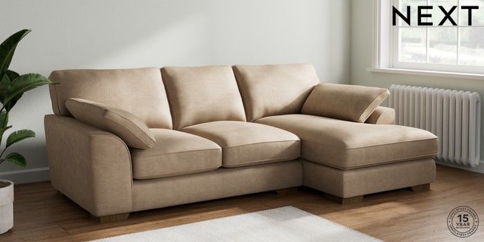 7.2.10 Stamford Grand Relaxed Sit Medium Sofa Chaise - Right Hand Luxe Chenille Mid Camel Beige Large Square Angle - Mid | Made Click here to use our website with more accessibility support, for example screen readers