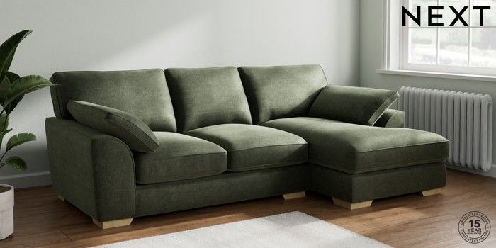 7.2.10 Stamford Grand Relaxed Sit Medium Sofa Chaise - Right Hand Luxe Chenille Mid Green Large Square Angle - Light | Made Click here to use our website with more accessibility support, for example screen readers