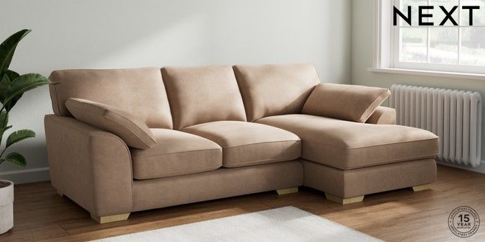 7.2.10 Stamford Grand Relaxed Sit Medium Sofa Chaise - Right Hand Luxe Chenille Mid Natural Large Square Angle - Light | Made Click here to use our website with more accessibility support, for example screen readers