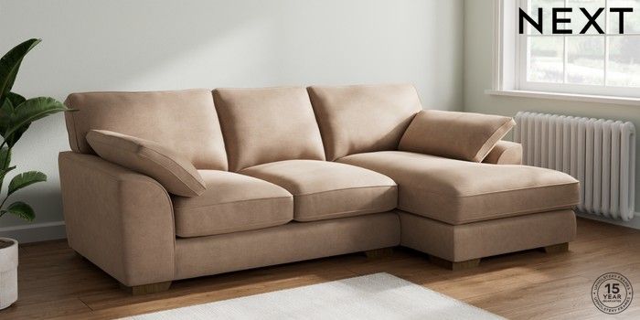 7.2.10 Stamford Grand Relaxed Sit Medium Sofa Chaise - Right Hand Luxe Chenille Mid Natural Large Square Angle - Mid | Made Click here to use our website with more accessibility support, for example screen readers