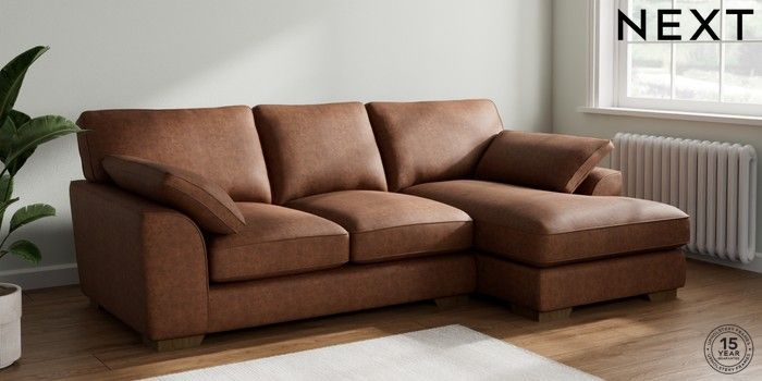 7.2.10 Stamford Grand Relaxed Sit Medium Sofa Chaise - Right Hand Monza Faux Leather Easy Clean Chestnut Brown Large Square Angle - Mid | Made Click here to use our website with more accessibility support, for example screen readers