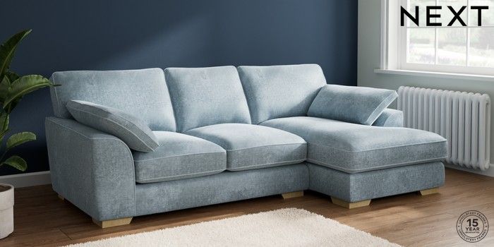 7.2.10 Stamford Grand Relaxed Sit Medium Sofa Chaise - Right Hand Plush Chenille Light Blue Large Square Angle - Light | Made Click here to use our website with more accessibility support, for example screen readers