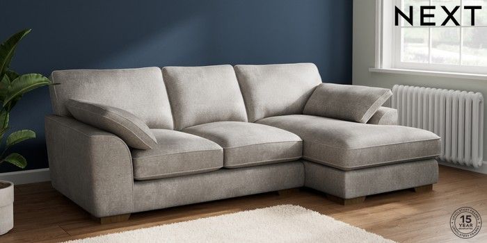 7.2.10 Stamford Grand Relaxed Sit Medium Sofa Chaise - Right Hand Plush Chenille Light Grey Large Square Angle - Mid | Made Click here to use our website with more accessibility support, for example screen readers