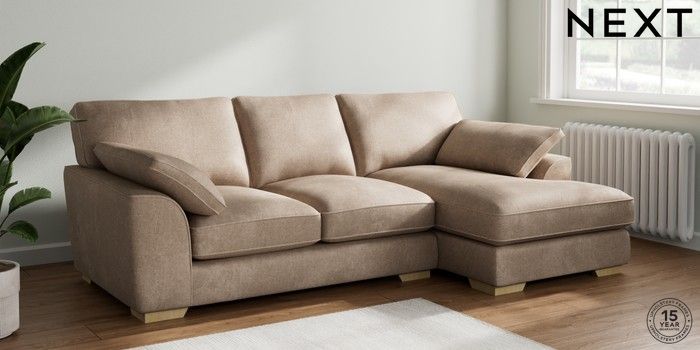 7.2.10 Stamford Grand Relaxed Sit Medium Sofa Chaise - Right Hand Plush Chenille Mid Natural Large Square Angle - Light | Made Click here to use our website with more accessibility support, for example screen readers