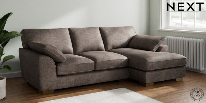 7.2.10 Stamford Grand Relaxed Sit Medium Sofa Chaise - Right Hand Plush Chenille Mink Brown Large Square Angle - Brushed Brass | Made Click here to use our website with more accessibility support, for example screen readers