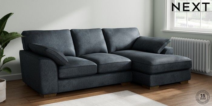 7.2.10 Stamford Grand Relaxed Sit Medium Sofa Chaise - Right Hand Plush Chenille Slate Blue Large Square Angle - Mid | Made Click here to use our website with more accessibility support, for example screen readers
