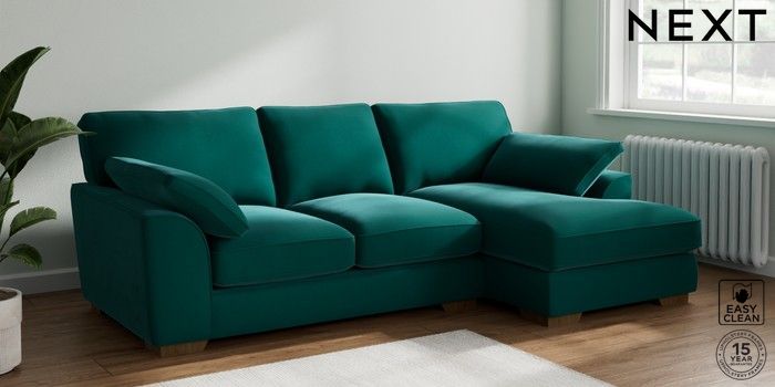 7.2.10 Stamford Grand Relaxed Sit Medium Sofa Chaise - Right Hand Plush Velvet Easy Clean Juniper Green Large Square Angle - Mid | Made Click here to use our website with more accessibility support, for example screen readers