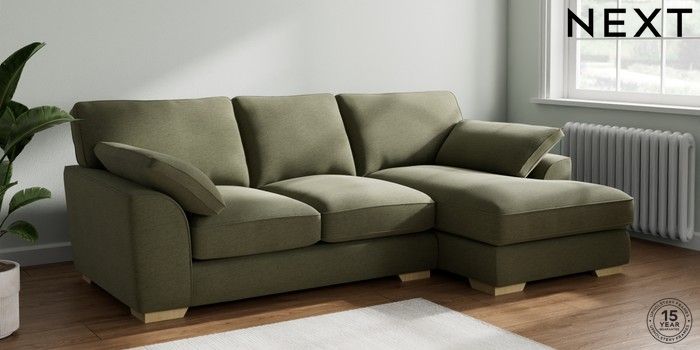 7.2.10 Stamford Grand Relaxed Sit Medium Sofa Chaise - Right Hand Ripple Chenille Mid Moss Green Large Square Angle - Light | Made Click here to use our website with more accessibility support, for example screen readers