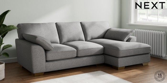 7.2.10 Stamford Grand Relaxed Sit Medium Sofa Chaise - Right Hand Studio Chenille Mid Grey Large Square Angle - Brushed Brass | Made Click here to use our website with more accessibility support, for example screen readers