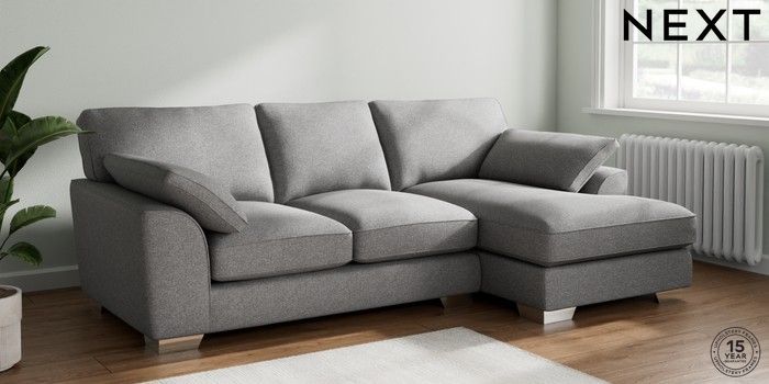 7.2.10 Stamford Grand Relaxed Sit Medium Sofa Chaise - Right Hand Studio Chenille Mid Grey Large Square Angle - Chrome Metal | Made Click here to use our website with more accessibility support, for example screen readers