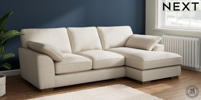 7.2.10 Stamford Grand Relaxed Sit Medium Sofa Chaise - Right Hand Tweedy Chenille Oyster Large Square Angle - Mid | Made Click here to use our website with more accessibility support, for example screen readers