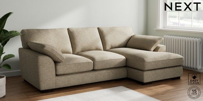 7.2.10 Stamford Grand Relaxed Sit Medium Sofa Chaise - Right Hand Woven Chenille Easy Clean Mid Natural Large Square Angle - Dark | Made Click here to use our website with more accessibility support, for example screen readers