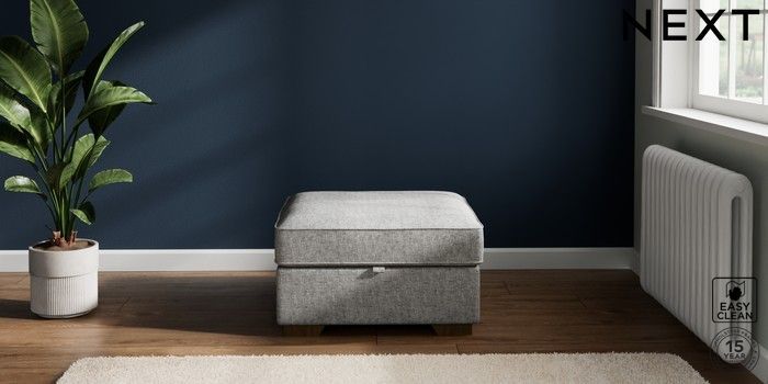 7.2.10 Stamford Grand Relaxed Sit Storage Footstool Chunky Boucle Easy Clean Light Grey Square Angle - Mid | Made Click here to use our website with more accessibility support, for example screen readers