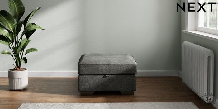 7.2.10 Stamford Grand Relaxed Sit Storage Footstool Plush Chenille Dark Grey Square Angle - Gunmetal | Made Click here to use our website with more accessibility support, for example screen readers