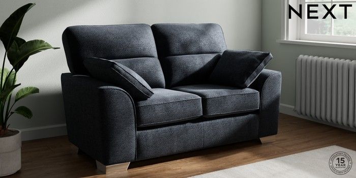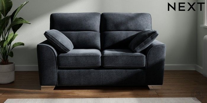 7.2.10 Stamford Highback 2 Seater Small Sofa Boucle Chenille Dark Slate Blue Large Square Angle - Chrome Metal | Made Click here to use our website with more accessibility support, for example screen readers