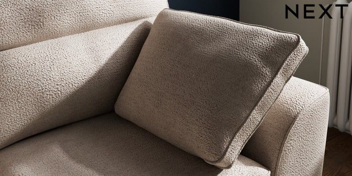 7.2.10 Stamford Highback 2 Seater Small Sofa Boucle Chenille Light Natural Large Square Angle - Brushed Brass | Made Click here to use our website with more accessibility support, for example screen readers