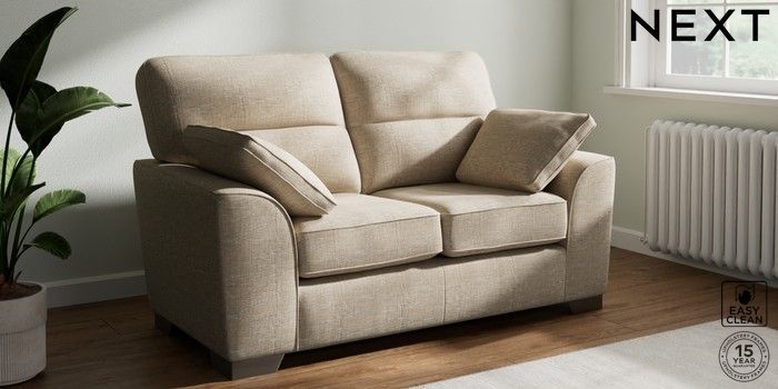 7.2.10 Stamford Highback 2 Seater Small Sofa Boucle Weave Easy Clean Dark Natural Large Square Angle - Gunmetal | Made Click here to use our website with more accessibility support, for example screen readers