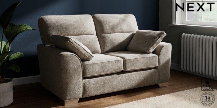 7.2.10 Stamford Highback 2 Seater Small Sofa Chunky Boucle Easy Clean Dove Large Square Angle - Chrome Metal | Made Click here to use our website with more accessibility support, for example screen readers