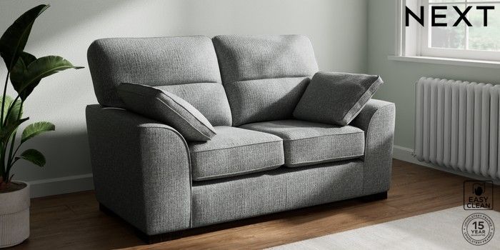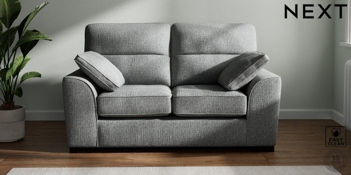 7.2.10 Stamford Highback 2 Seater Small Sofa Chunky Boucle Easy Clean Mid Grey Large Square Angle - Dark | Made Click here to use our website with more accessibility support, for example screen readers