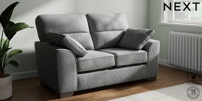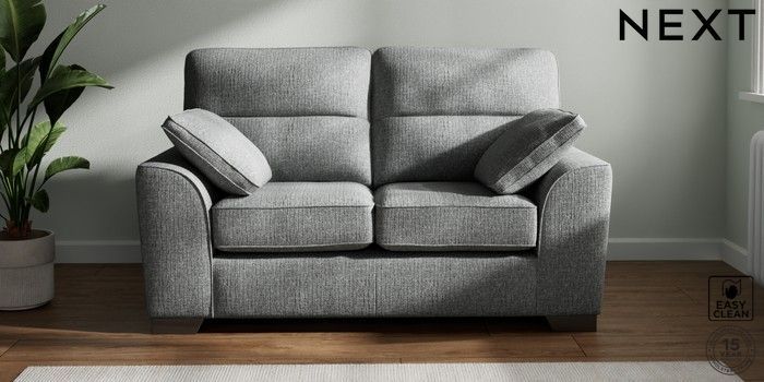 7.2.10 Stamford Highback 2 Seater Small Sofa Chunky Boucle Easy Clean Mid Grey Large Square Angle - Gunmetal | Made Click here to use our website with more accessibility support, for example screen readers
