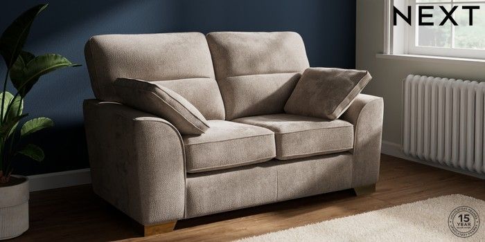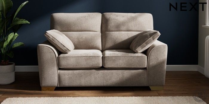 7.2.10 Stamford Highback 2 Seater Small Sofa Chunky Chenille Light Dove Large Square Angle - Brushed Brass | Made Click here to use our website with more accessibility support, for example screen readers