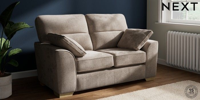 7.2.10 Stamford Highback 2 Seater Small Sofa Chunky Chenille Light Dove Large Square Angle - Light | Made Click here to use our website with more accessibility support, for example screen readers