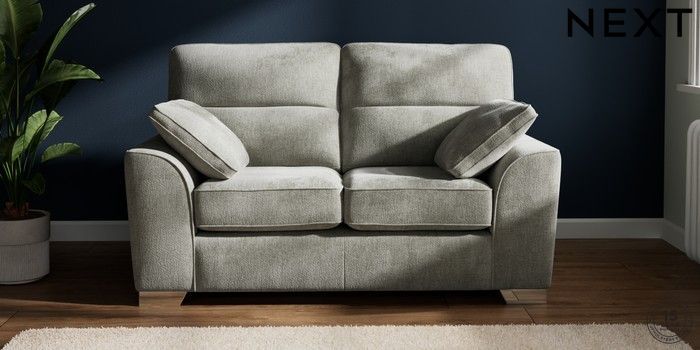 7.2.10 Stamford Highback 2 Seater Small Sofa Chunky Chenille Light Grey Large Square Angle - Chrome Metal | Made Click here to use our website with more accessibility support, for example screen readers
