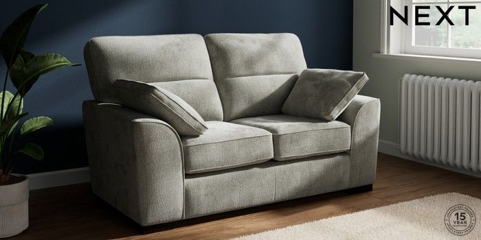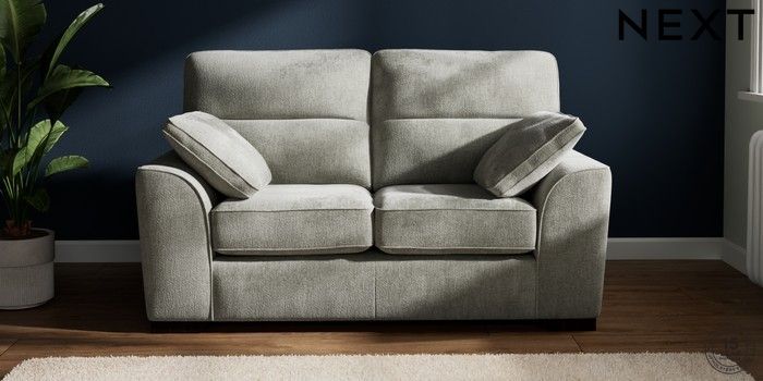 7.2.10 Stamford Highback 2 Seater Small Sofa Chunky Chenille Light Grey Large Square Angle - Dark | Made Click here to use our website with more accessibility support, for example screen readers