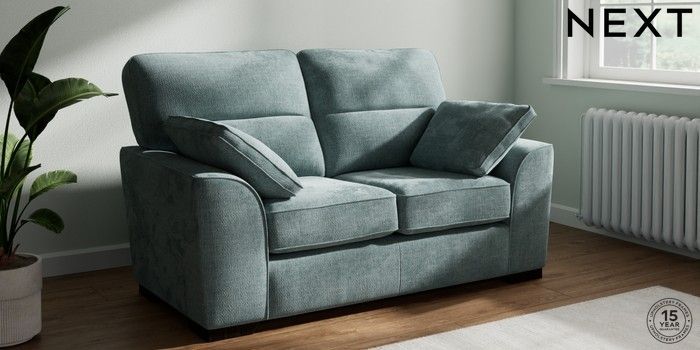 7.2.10 Stamford Highback 2 Seater Small Sofa Chunky Chenille Light Teal Green Large Square Angle - Dark | Made Click here to use our website with more accessibility support, for example screen readers