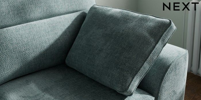 7.2.10 Stamford Highback 2 Seater Small Sofa Chunky Chenille Light Teal Green Large Square Angle - Gunmetal | Made Click here to use our website with more accessibility support, for example screen readers