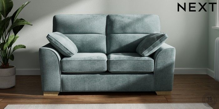 7.2.10 Stamford Highback 2 Seater Small Sofa Chunky Chenille Light Teal Green Large Square Angle - Light | Made Click here to use our website with more accessibility support, for example screen readers